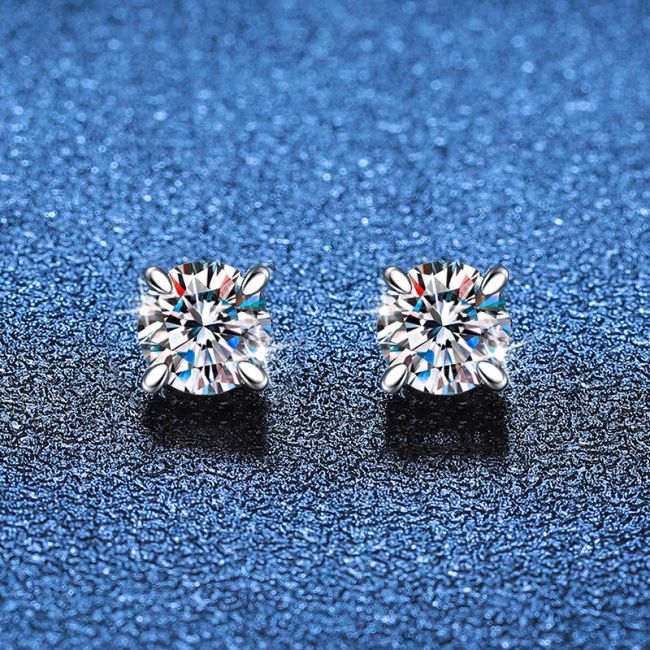 • Stone Type: Brilliant cut moissanite stones with exceptional clarity and fire, available in 6.5mm high carbon stone or 1 carat per earring options