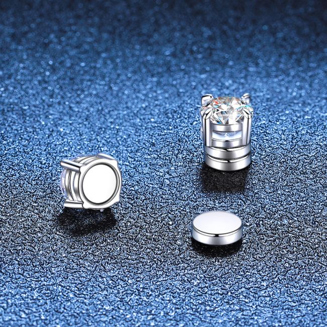 Earrings Sterling Silver Moissanite Stud Earrings with Classic Four Prong Setting and Magnetic Clip Design