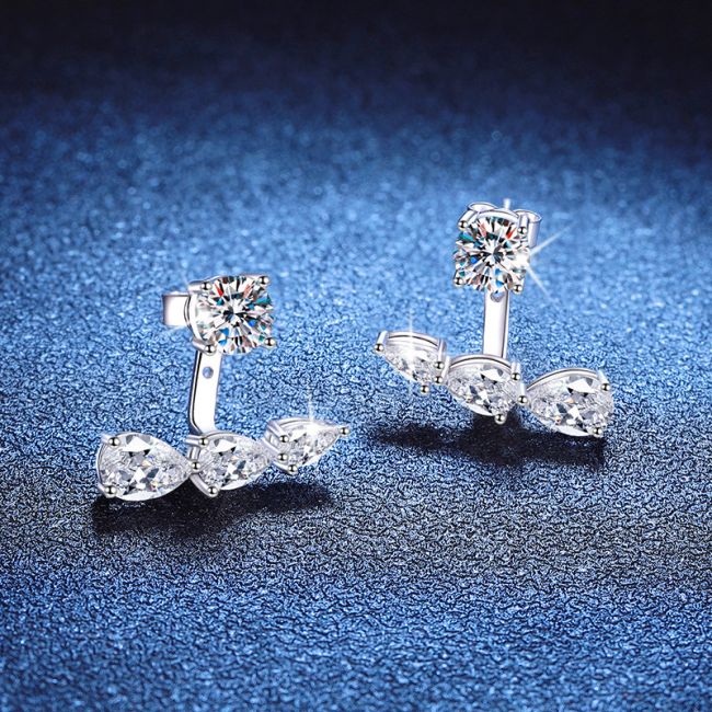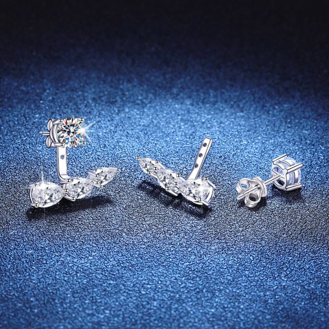 Earrings Sterling Silver Moissanite Stud Earrings with Detachable Ear Jacket Two Way Wear Four Prong Setting