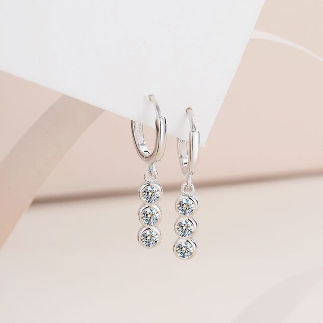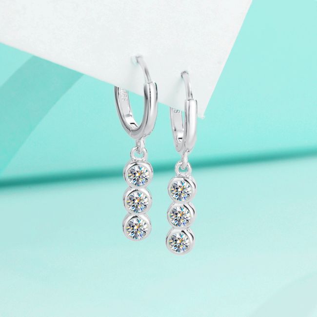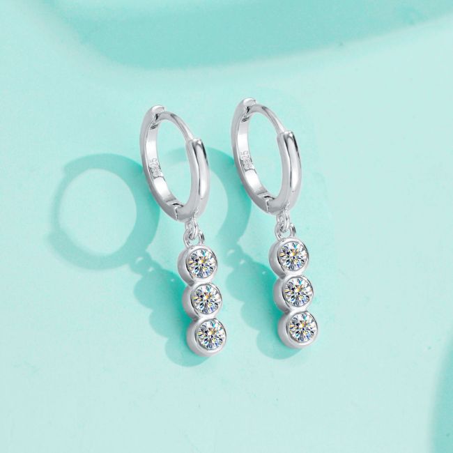 Earrings - Sterling Silver Moissanite Stud Earrings with Minimalist Design and Elegant Hook Style