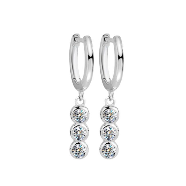 Earrings Sterling Silver Round Moissanite Drop Earrings with 4-Prong Setting