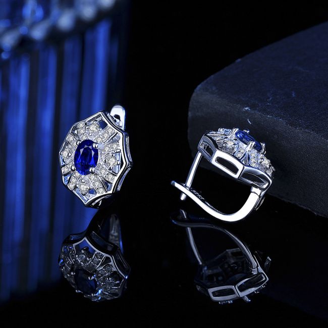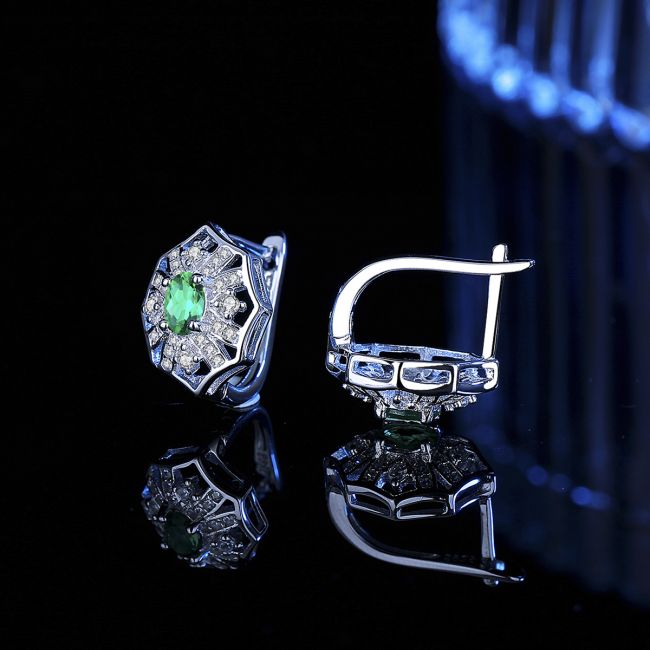 Earrings - Sterling Silver Palace Style Stud Earrings with Colorful Zirconia Stones