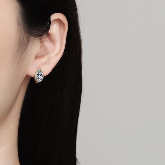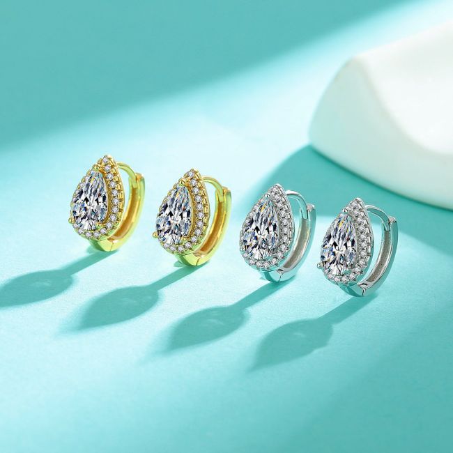Earrings - Sterling Silver Pear-Shaped Moissanite Stud Earrings with Elegant Design