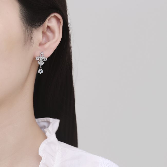 Earrings - Sterling Silver Platinum Plated Moissanite Iris Flower Stud Earrings
