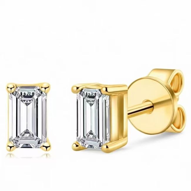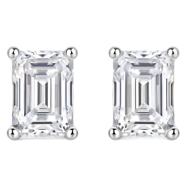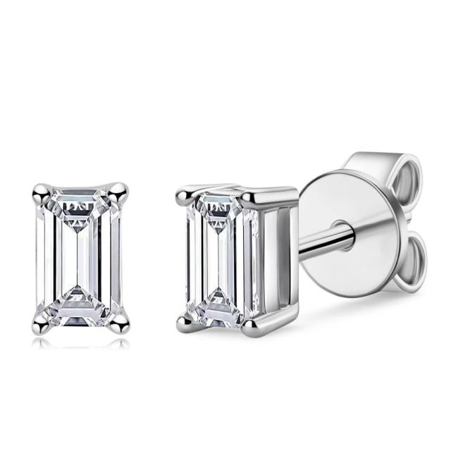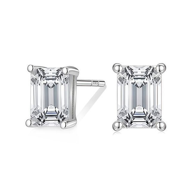 Earrings - Sterling Silver Rectangular Moissanite Stud Earrings with Asymmetric Design
