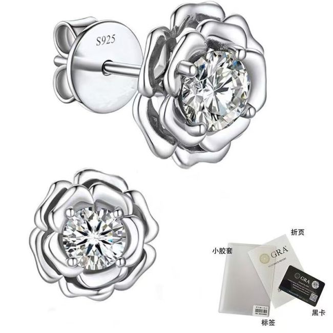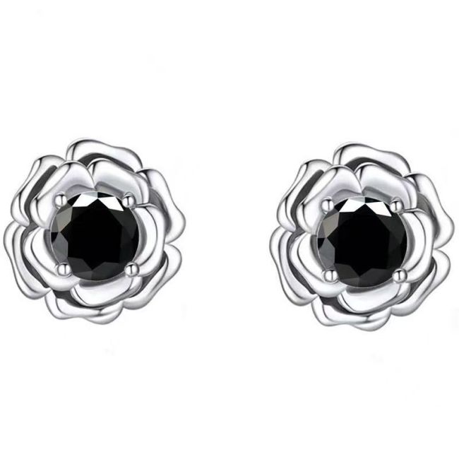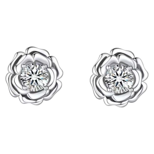 Earrings - Sterling Silver Rose Flower Stud Earrings with Colorful Moissanite Gemstones