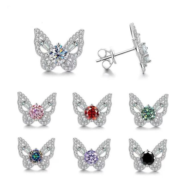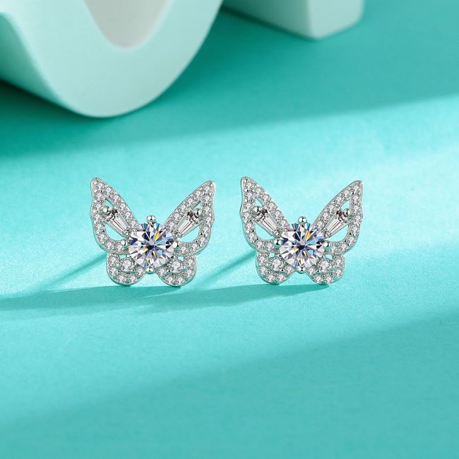 Earrings - Sterling Silver S925 Moissanite Butterfly Stud Earrings Elegant Fashion Jewelry