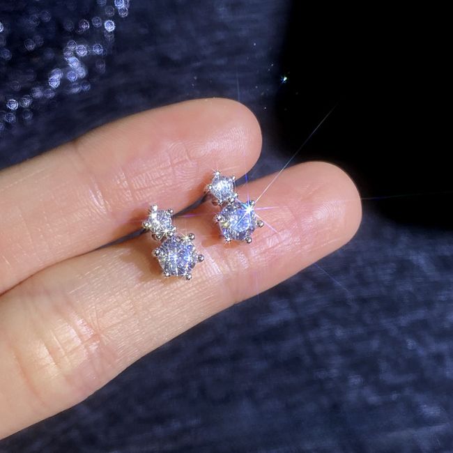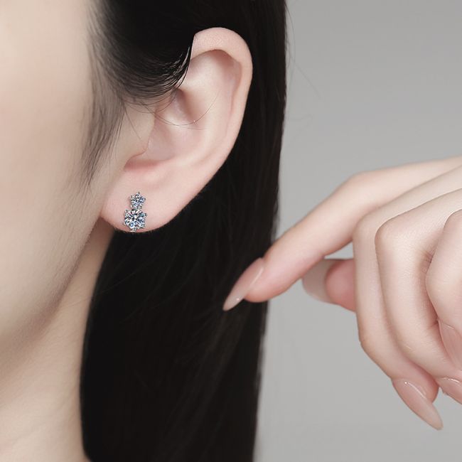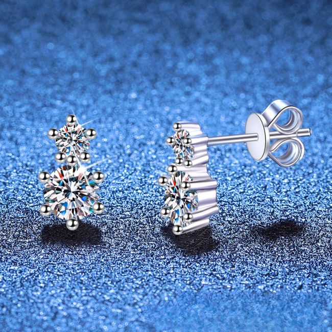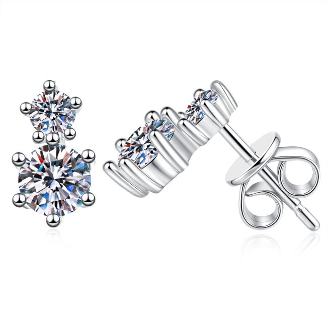 - Design: Elegant double stone arrangement featuring two round brilliant cut moissanites per earring