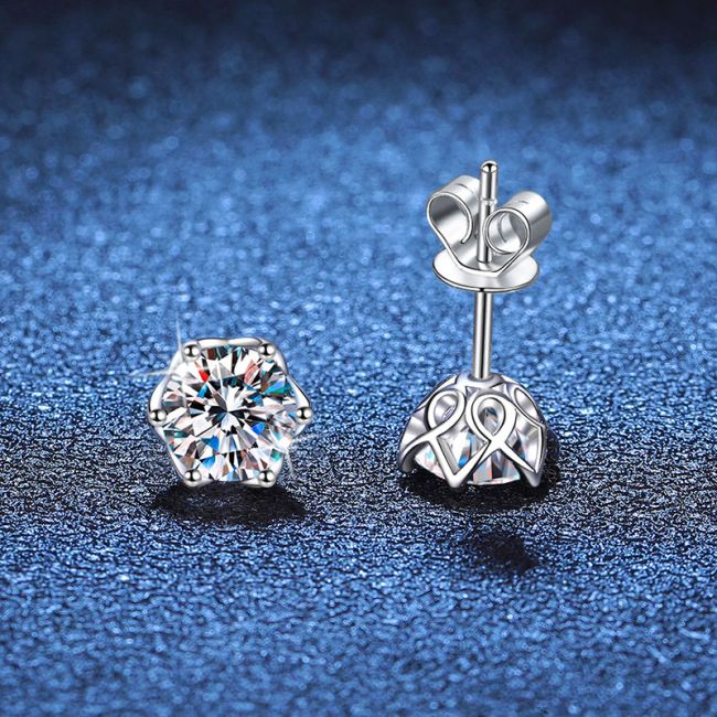 Earrings Sterling Silver Six-Prong Rose Petal Moissanite Stud Earrings with Brilliant Round Cut Stones