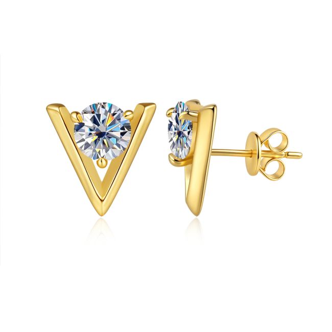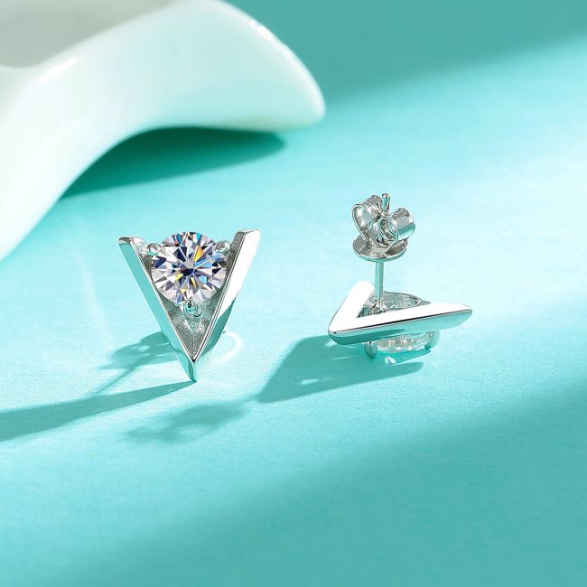 Earrings - Sterling Silver Triangle Moissanite Stud Earrings Geometric Minimalist Design