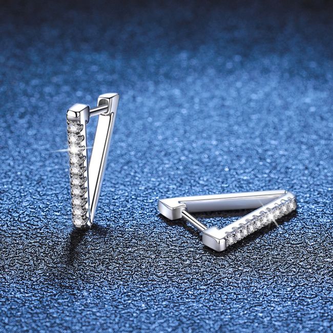 Earrings - Sterling Silver V-Shaped Moissanite Stud Earrings with Pave Setting
