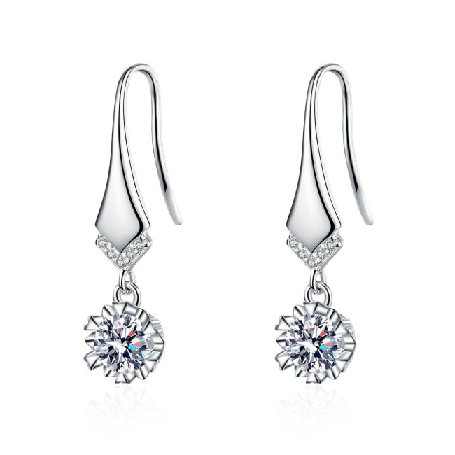 Earrings V-Shaped Camellia Floral Sterling Silver Moissanite and Zirconia Drop Elegant Luxury Style