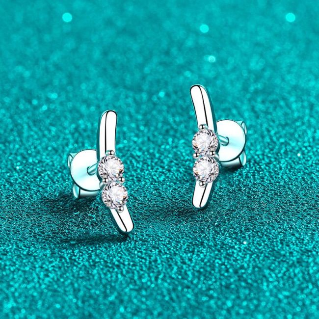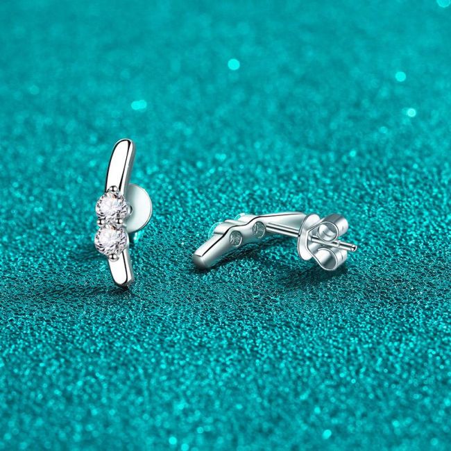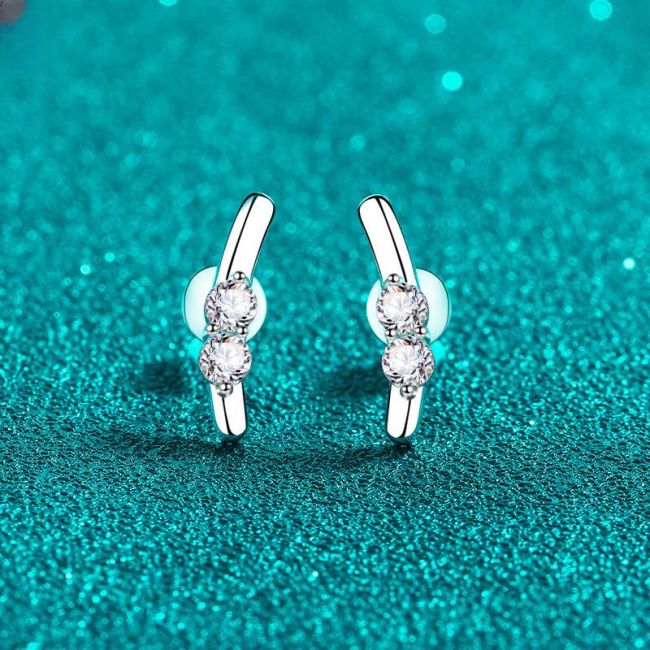 Earrings with 925 Sterling Silver Rabbit Ear Design Featuring 0.4 Carat Moissanite Accents