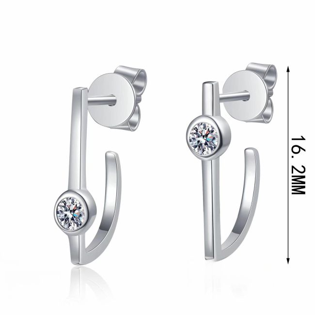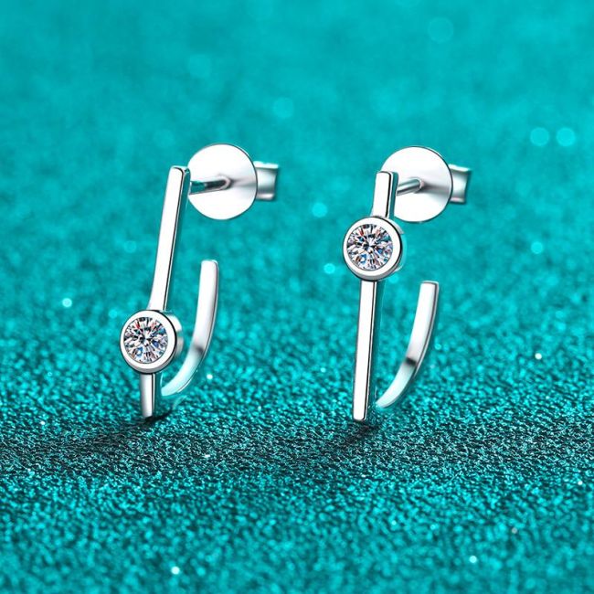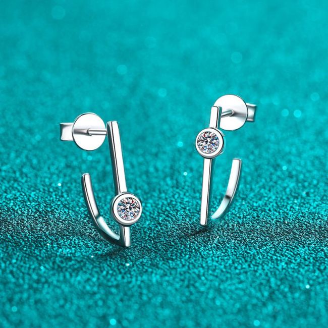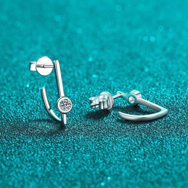 Earrings with Minimalist Linear Design Featuring Irregular Geometric Shapes and Moissanite Accents