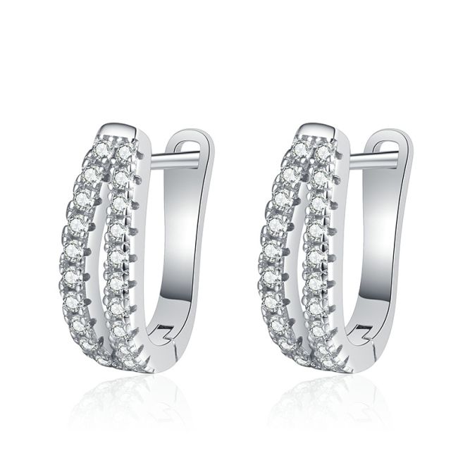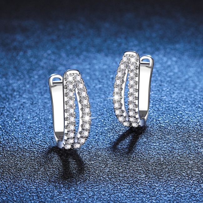 Elegant Crossover Moissanite Stud Earrings Sterling Silver Double Row Sparkling Hoop Design