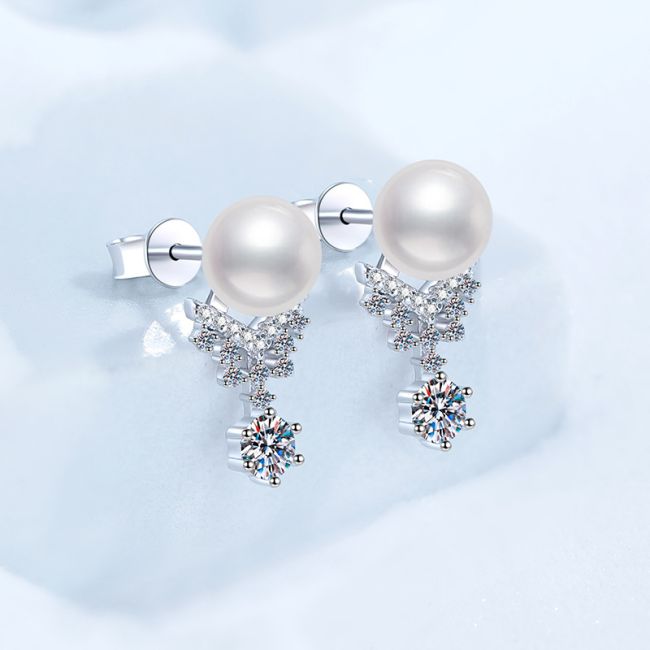 - Style Features: Timeless elegance with a modern twist, combining classic pearls with contemporary moissanite brilliance