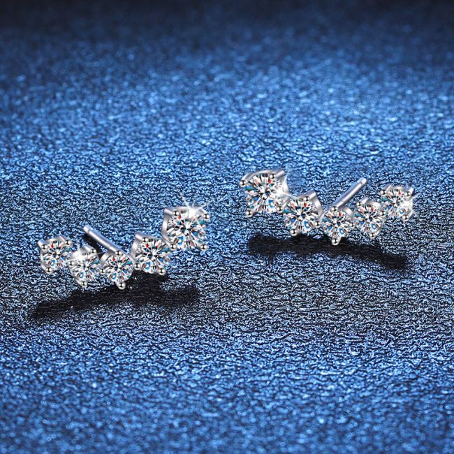 Elegant Curved Smile Arc Moissanite Stud Earrings Sterling Silver Ear Climbers for Women