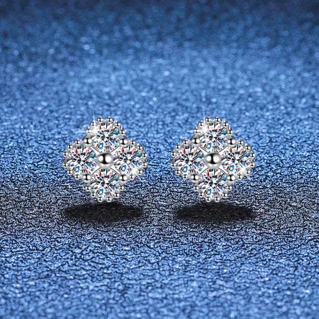 - Design: Classic four leaf clover shape featuring four brilliant-cut moissanite stones arranged in a lucky clover pattern