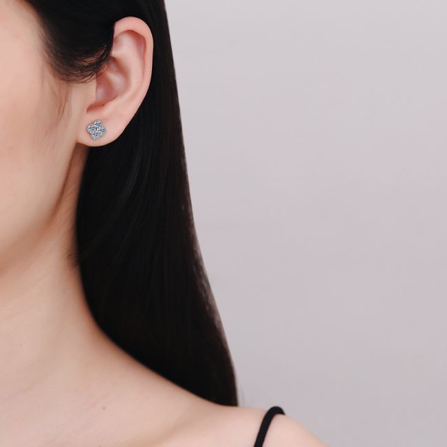 Elegant Four Leaf Clover Moissanite Stud Earrings in Sterling Silver with Platinum or Gold Plating