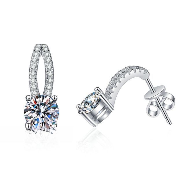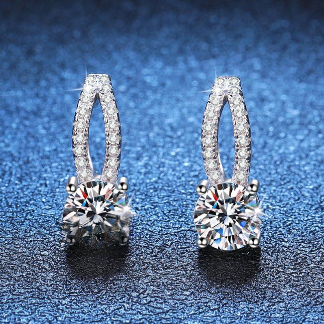 - Main Stone: 1 carat moissanite per earring, D color grade for exceptional clarity and brilliance