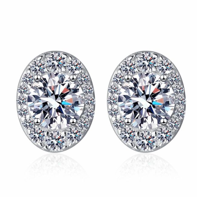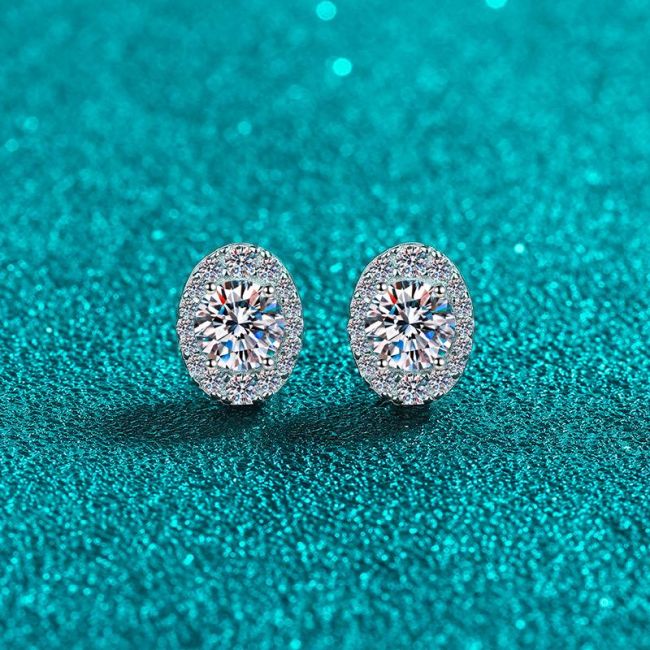 - Gemstone: 1 Carat Total Weight Oval Moissanite (0.5 Carat Each)