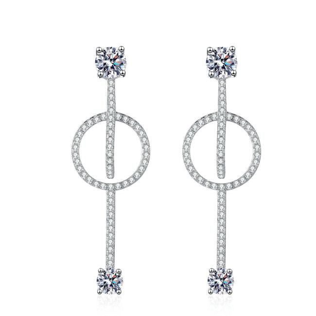 Elegant Split Drop Earrings with 1.6 Carat Moissanite and 7A Zircon in Platinum-Plated 925 Silver