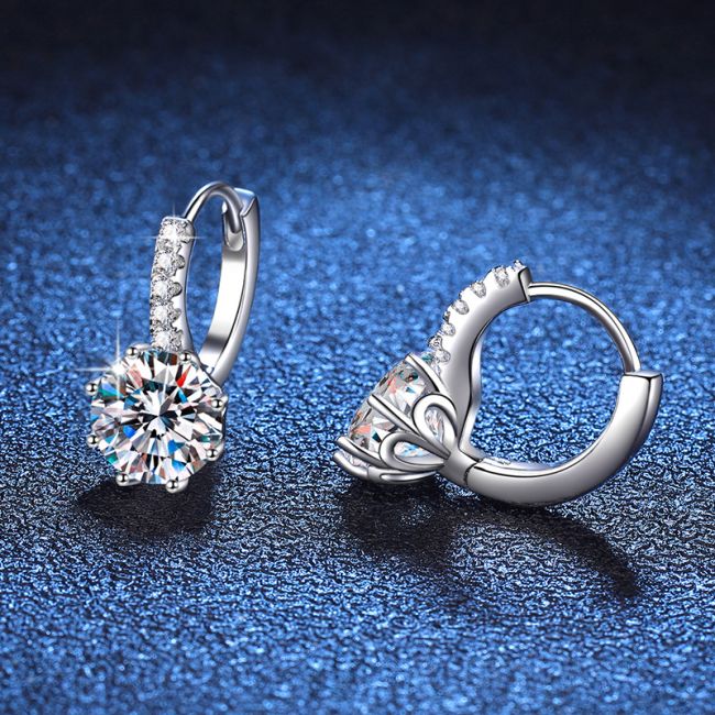 - Main Stone: 2 Carat Moissanite per earring, D Color grade for exceptional clarity and brilliance