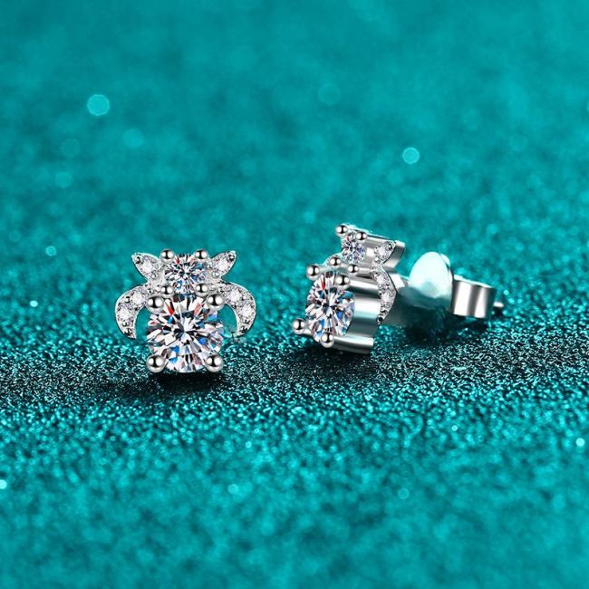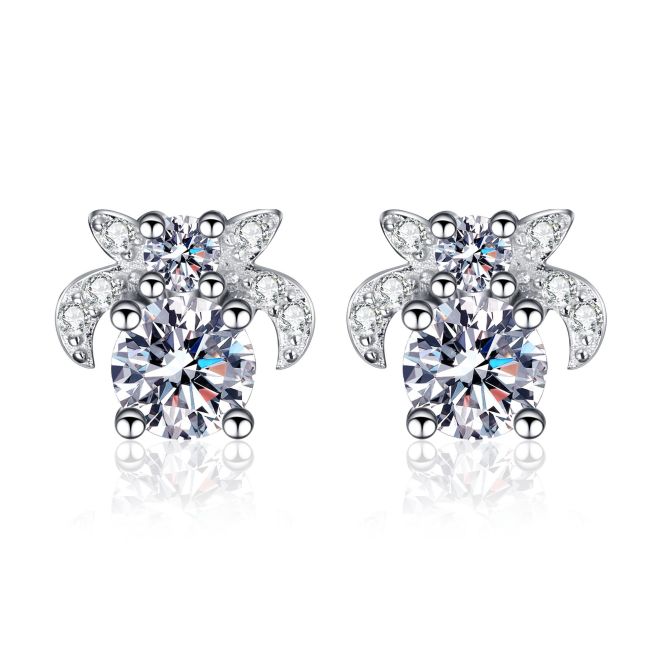 Elegant Sterling Silver Moissanite Flower Stud Earrings with Zircon Accents for Women