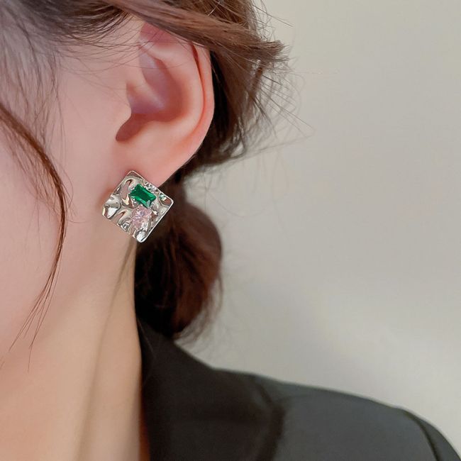 Geometric Silver Earrings with Emerald Cut and Radiant Cut Moissanite Stones for Women