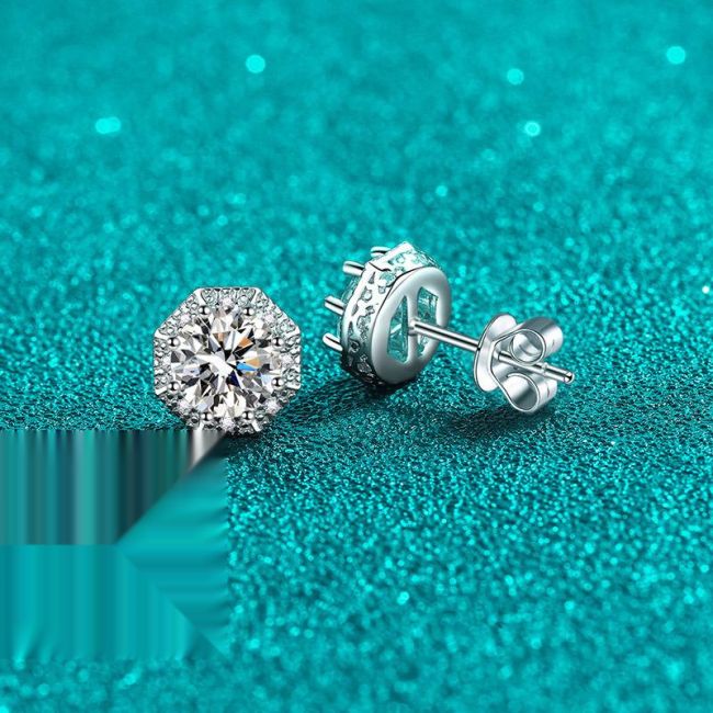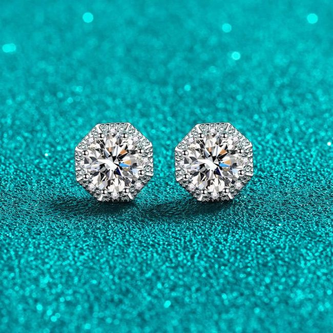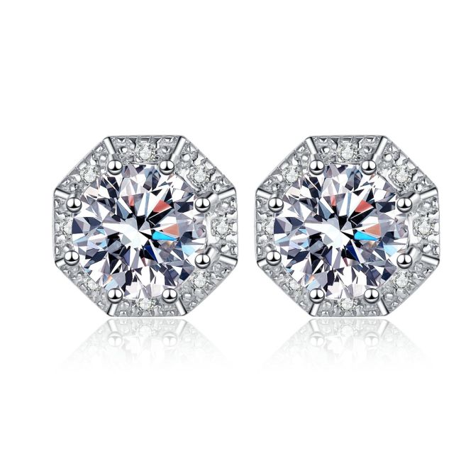 Geometric Octagon Earrings with 2 Carat Moissanite Stones and 6.5mm Zircon Accents in Sterling Silver