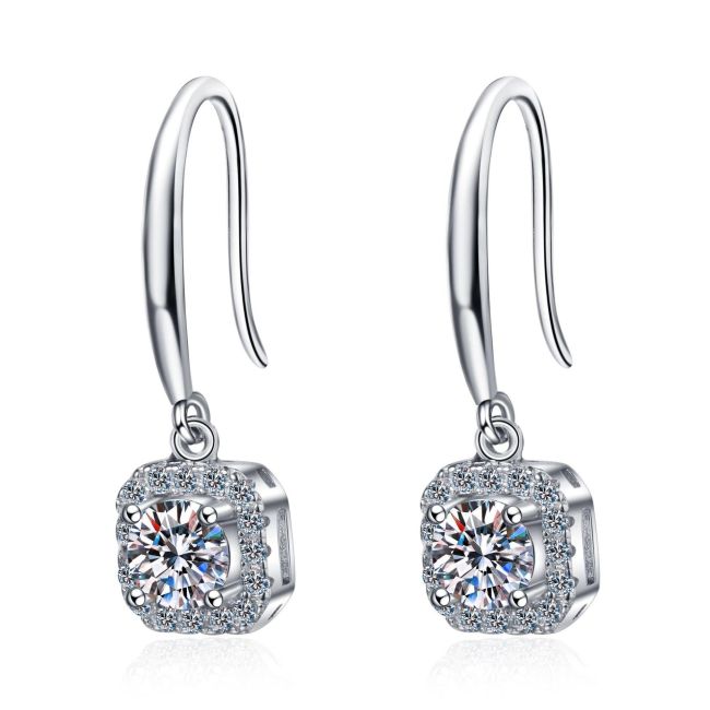 Geometric Silver Earrings with 1 Carat Moissanite and Zircon Accents in Platinum Plated Finish