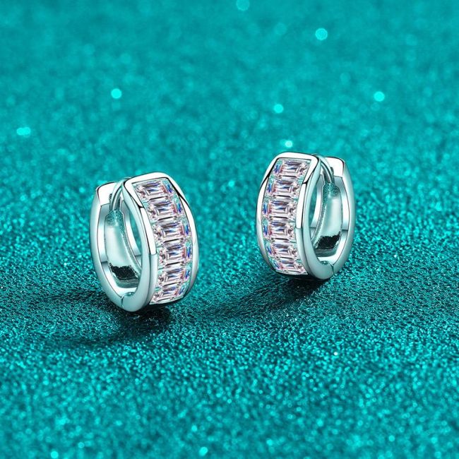 Geometric Square Earrings with 1.8 Carat Moissanite in Sterling Silver