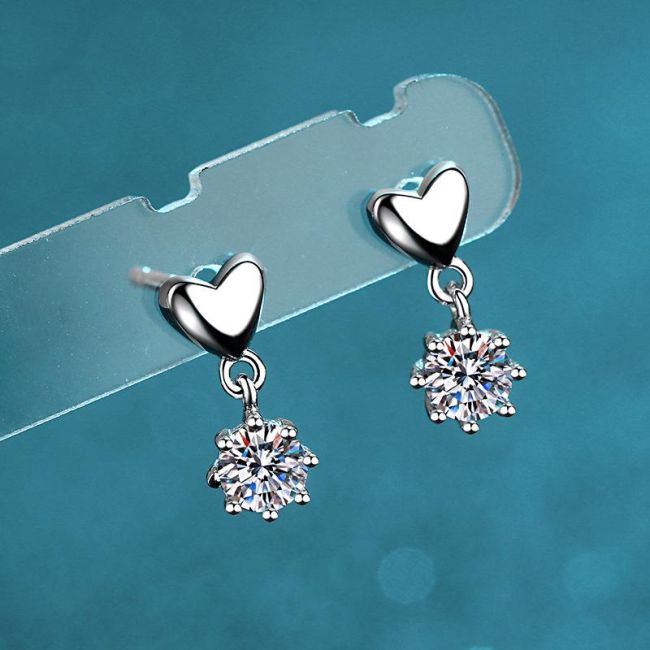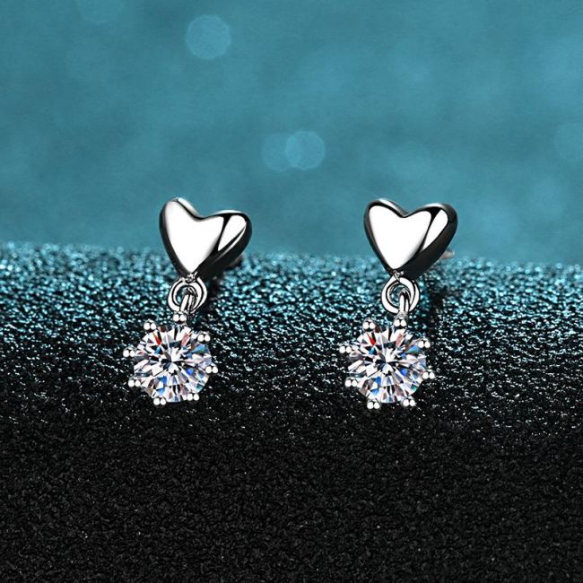 Heart Shaped Moissanite Stud Earrings with Platinum Plating