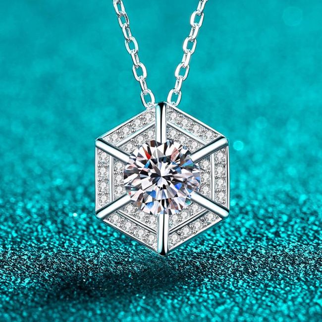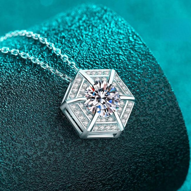 Hexagonal Moissanite Pendant Necklace for Women with Layered Chain Design in Sterling Silver