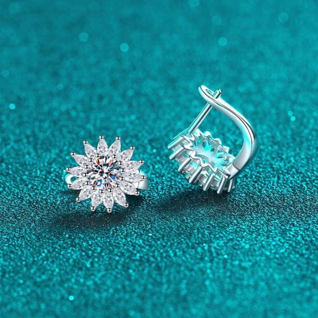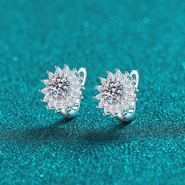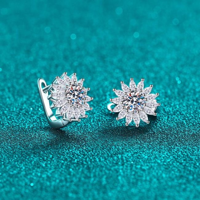 Elegant Moissanite Hoop Earrings for Women with Floral Motifs in Sterling Silver