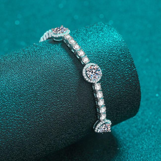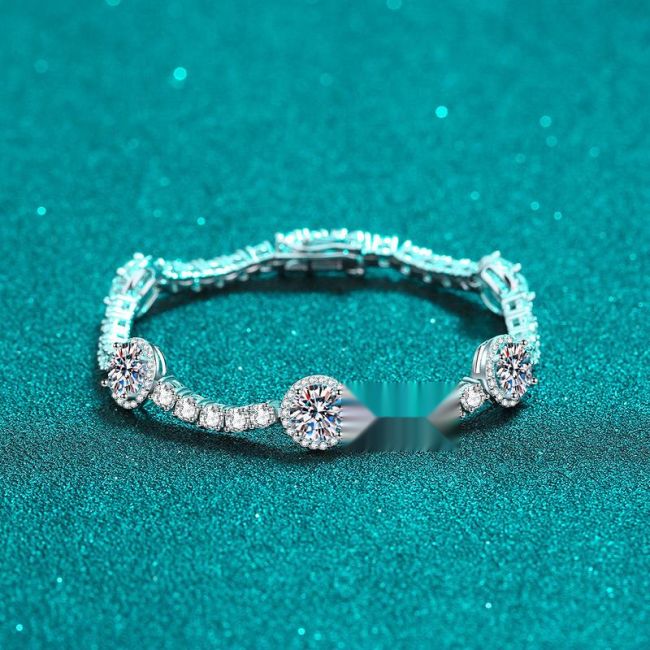 Bracelet with 925 Sterling Silver Plated PT950 and Full Moissanite Cluster Setting in Three Size Options