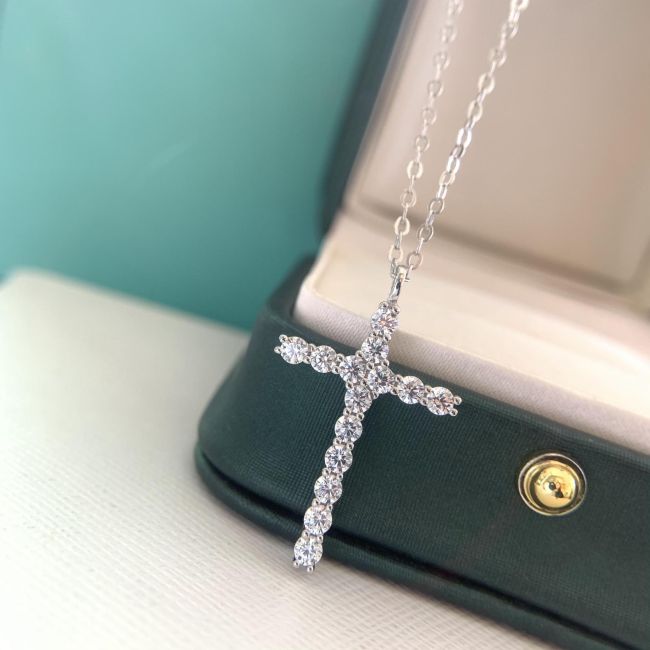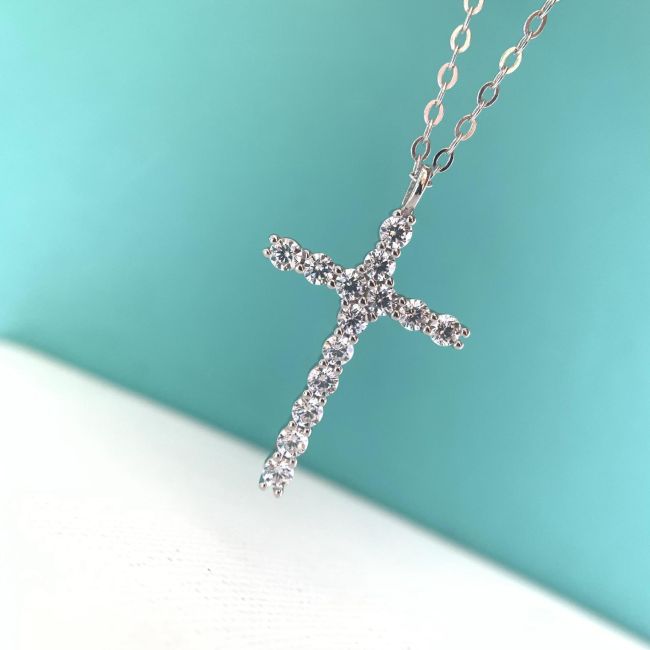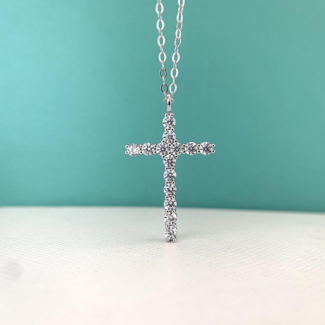 Necklace 925 Sterling Silver Cross Pendant with Full Moissanite Stones Hip Hop Style Unisex