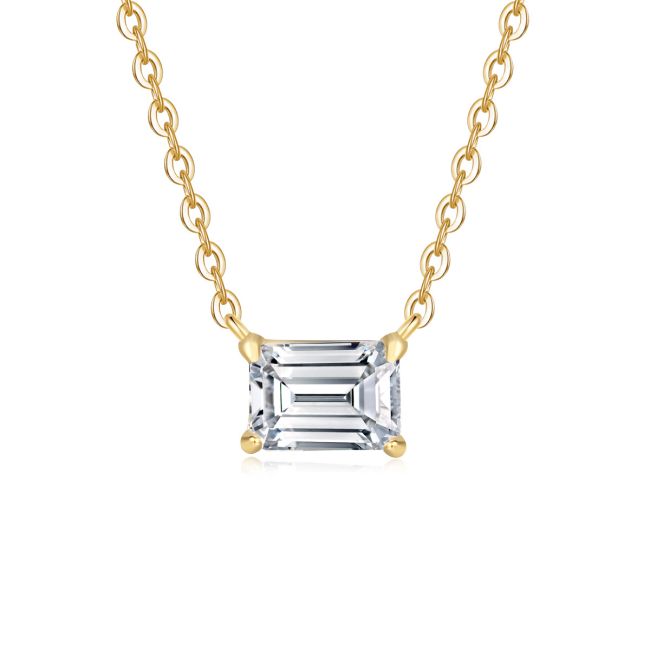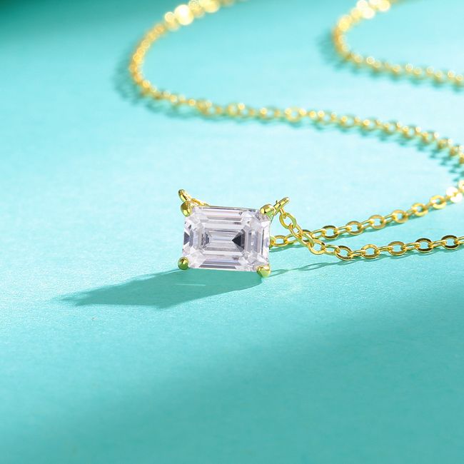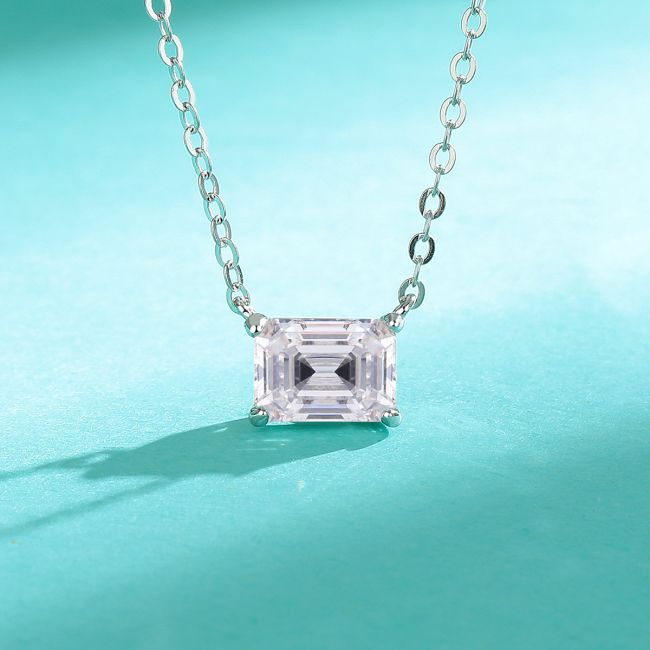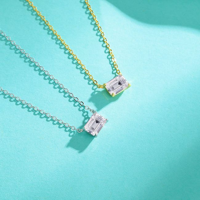 Necklace 925 Sterling Silver Emerald Cut Moissanite Square Pendant Delicate Collarbone Chain