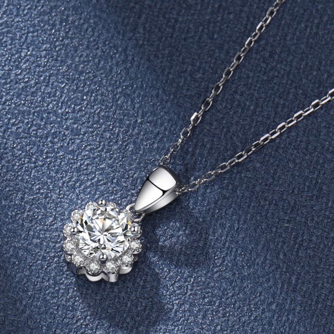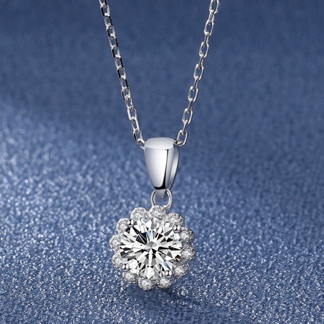 Necklace 925 Sterling Silver Flower Bud Pendant with 1 Carat Moissanite Platinum Plated