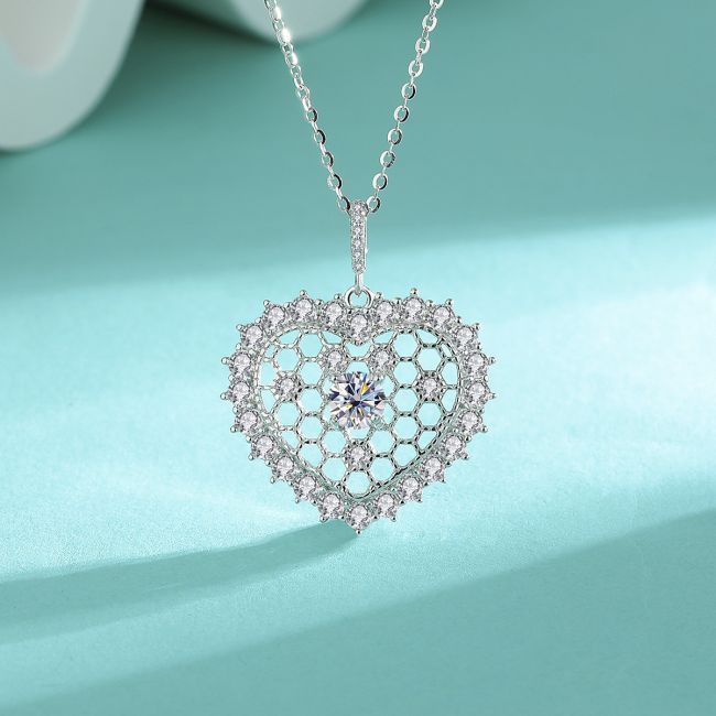 Necklace 925 Sterling Silver Heart Pendant with Moissanite or Cubic Zirconia Delicate Collarbone Chain