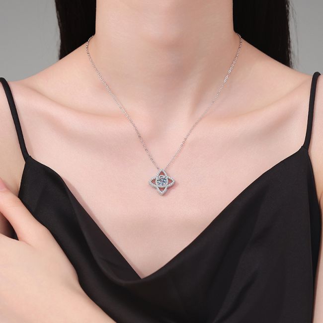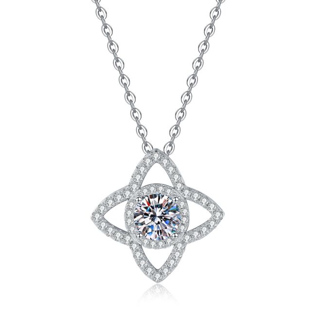 Necklace 925 Sterling Silver Lotus Flower Moissanite Pendant with Brilliant Cut Center Stone