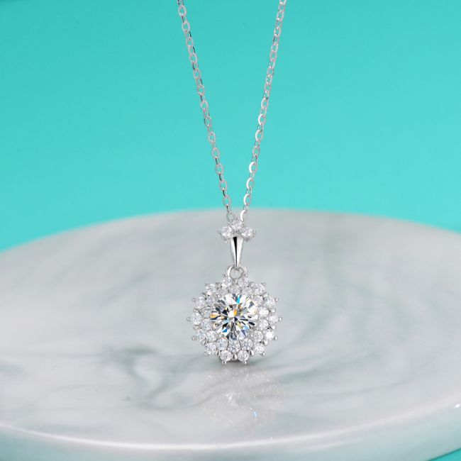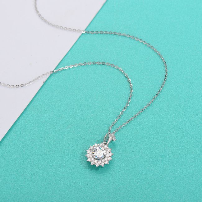 Necklace Sterling Silver Moissanite Flower Pendant Delicate Collarbone Chain