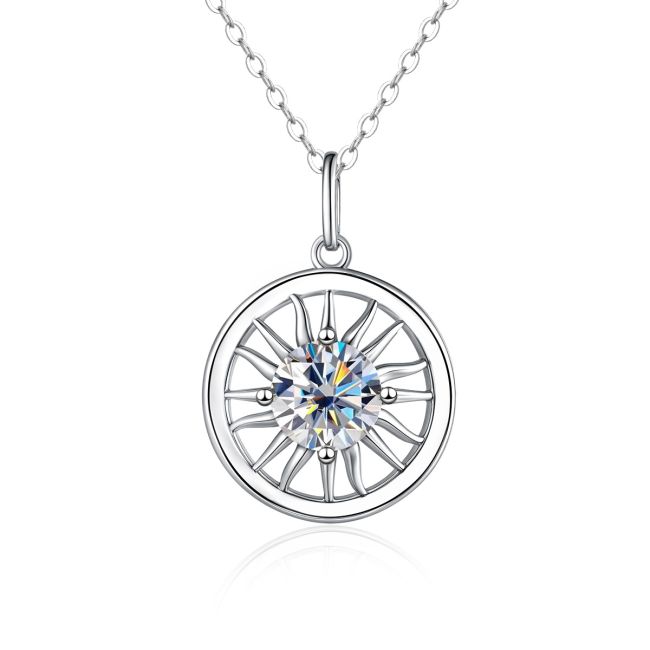 Necklace 925 Sterling Silver Moissanite Sun Pendant Minimalist Collarbone Chain
