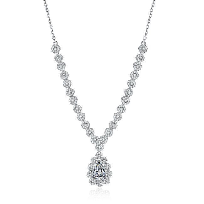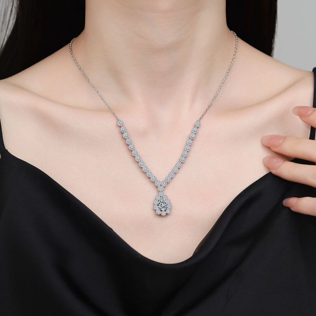 Necklace 925 Sterling Silver Sunflower Teardrop Moissanite Collarbone Chain with Sparkling Stones