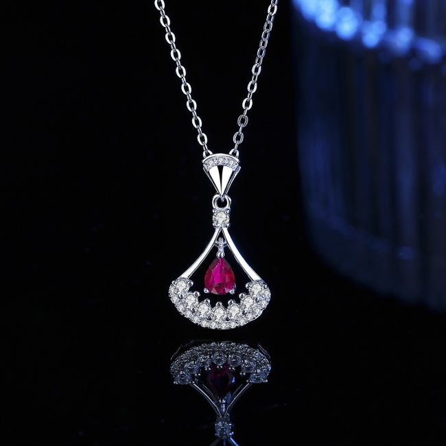 Necklace 925 Sterling Silver Teardrop Colorful Zirconia Pendant Dress Design