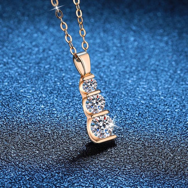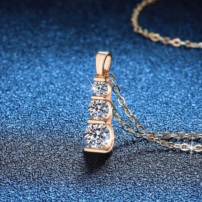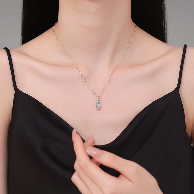 - Design: Elegant vertical three-stone pendant with graduated sizing from top to bottom