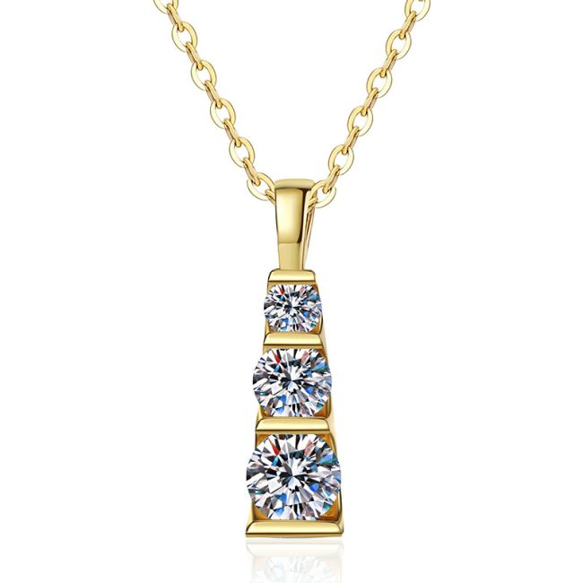 Necklace 925 Sterling Silver Three Stone Moissanite Pendant with 14K Gold Plating