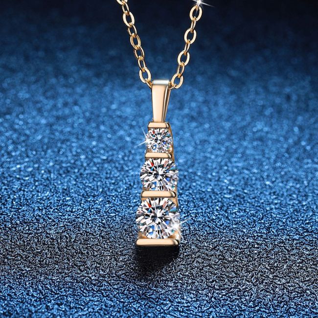 Necklace 925 Sterling Silver Three Stone Moissanite Pendant with 14K Gold Plating