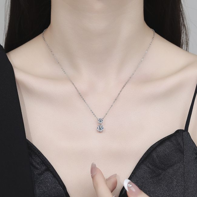 Necklace Sterling Silver Heart Moissanite Three Prong Collarbone Chain Minimalist Fashion Jewelry