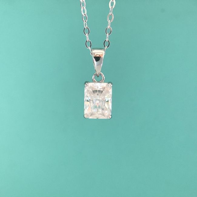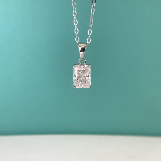 Necklace 925 Sterling Silver Moissanite Square Cut Pendant with 18K White Gold Plating